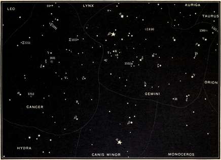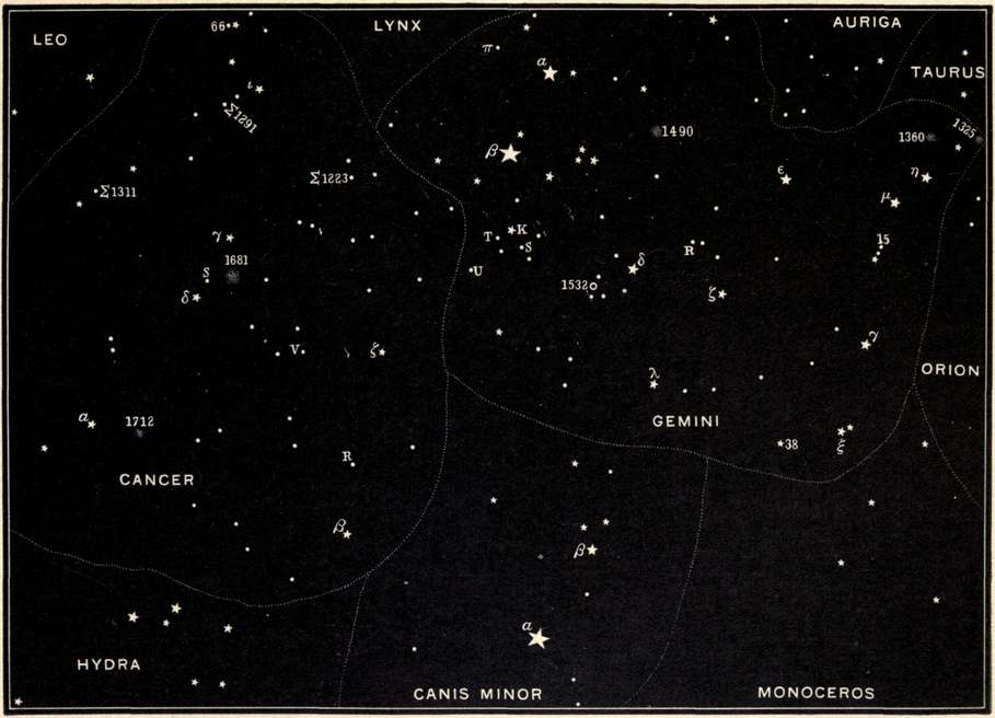 | The zodiacal constellations Gemini, Cancer, and Leo, and their neighbors Auriga, the Lynx, Hydra, Sextans, and Coma Berenices. | |