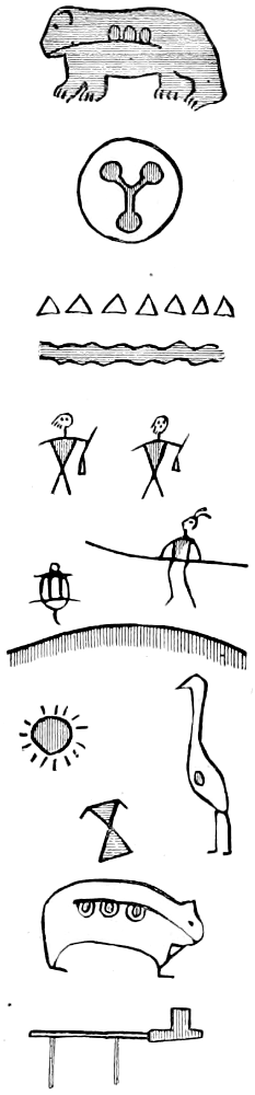 | in Colored pictographs on rocks | 33 |