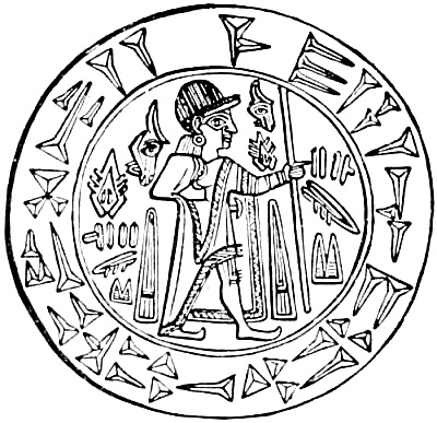 [560] Perhaps one of the antediluvian Babylonian kings. (See Part II, Chapter IV.) The Sumerian form of his name was Laluralim and in Rawlinson’s Cuneiform Inscriptions of Western Asia, Vol. V, p. 44, 17b, is glossed as Zugagib or “scorpion.” Zugagib is one of the early kings of Babylonia, who is said to have ruled 840 years.
