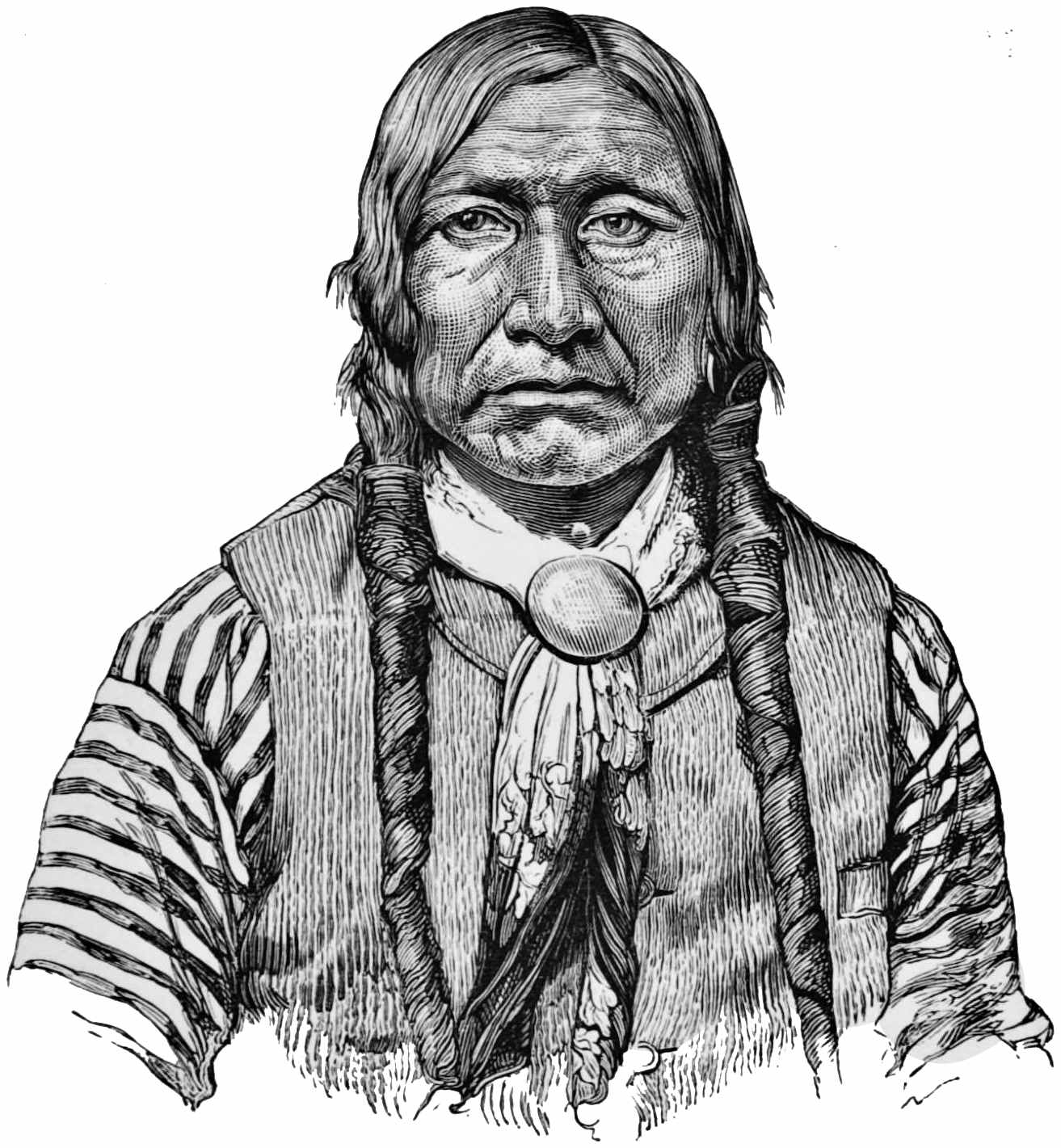 To those who advocate the application of the laws of civilization to the Indian, it might be a profitable study to investigate the effect which such application produces upon the strength of the tribe as expressed in numbers. Looking at him as the fearless hunter, the matchless horseman and warrior of the Plains, where Nature placed him, and contrasting him with the reservation Indian, who is supposed to be revelling in the delightful comforts and luxuries of an enlightened condition, but who in reality is grovelling in beggary, bereft of many of the qualities which in his wild state tended to render him noble, and heir to a combination of vices partly his own, partly bequeathed to him from the pale-face, one is forced, even against desire, to conclude that there is unending antagonism between the Indian nature and that with which his well-meaning white brother would endow him. Nature intended him for a savage state; every instinct, every impulse of his soul inclines him to it. The white race might fall into a barbarous state, and afterwards, subjected to the influence of civilization, be reclaimed and prosper. Not so the Indian. He cannot be himself and be civilized; he fades away and dies. Cultivation such as the white man would give him deprives him of his identity. Education, strange as it may appear, seems to weaken rather than strengthen his intellect. Where do we find any specimens of educated Indian eloquence comparing with that of such native, untutored orators as Tecumseh, Osceola, Red Jacket, and Logan; or, to select from those of more recent fame, Red Cloud of the Sioux, or Sa-tan-ta of the Kiowas? Unfortunately for the last-named chief, whose name has been such a terror to our frontier settlements, he will have to be judged for other qualities than that of eloquence. Attention has more recently been directed to him by his arrest by the military authorities near Fort Sill, Indian Territory, and his transportation to Texas for trial by civil court for various murders and depredations, alleged to have been committed by him near the Texas frontier. He has since had his trial, and, if public rumor is to be credited, has been sentenced to death. Reference will be made to this noted chief in succeeding pages. His eloquence and able arguments upon the Indian question in various councils to which he was called won for him the deserved title of “Orator of the Plains.” In his boasting harangue before the General of the Army, which furnished the evidence of his connection with the murders for which he has been tried and sentenced, he stated as a justification for such outrages, or rather as the occasion of them, that they were in retaliation for his arrest and imprisonment by me some three years ago. As there are two sides to most questions, even if one be wrong, when the proper time arrives a brief account of Sa-tan-ta’s arrest and imprisonment, with the causes leading thereto, will be given in these sketches. One of the favorite remarks of Sa-tan-ta in his orations, and one too which other chiefs often indulge in, being thrown out as a “glittering generality,” meaning much or little as they may desire, but most often the latter, was that he was tired of making war and desired now “to follow the white man’s road.” It is scarcely to be presumed that18 he found the gratification of this oft-expressed desire in recently following the “white man’s road” to Texas, under strong guard and heavily manacled, with hanging, to the Indian the most dreaded of all deaths, plainly in the perspective. Aside, however, from his character for restless barbarity, and activity in conducting merciless forays against our exposed frontiers, Sa-tan-ta is a remarkable man—remarkable for his powers of oratory, his determined warfare against the advances of civilization, and his opposition to the abandonment of his accustomed mode of life, and its exchange for the quiet, unexciting, uneventful life of a reservation Indian. If I were an Indian, I often think that I would greatly prefer to cast my lot among those of my people who adhered to the free open plains, rather than submit to the confined limits of a reservation, there to be the recipient of the blessed benefits of civilization, with its vices thrown in without stint or measure. The Indian can never be permitted to view the question in this deliberate way. He is neither a luxury nor necessary of life. He can hunt, roam, and camp when and wheresoever he pleases, provided always that in so doing he does not run contrary to the requirements of civilization in its advancing tread. When the soil which he has claimed and hunted over for so long a time is demanded by this to him insatiable monster, there is no appeal; he must yield, or, like the car of Juggernaut, it will roll mercilessly over him, destroying as it advances. Destiny seems to have so willed it, and the world looks on and nods its approval. At best the history of our Indian tribes, no matter from what standpoint it is regarded, affords a melancholy picture of loss of life. Two hundred years ago it required millions to express in numbers the Indian population, while at the present time less than half the number of thousands will suffice for the purpose. Where and why have they gone? Ask the Saxon race, since whose introduction into and occupation of the country these vast changes have been effected.