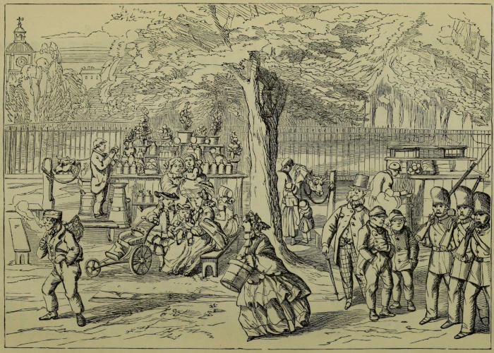 “Who will always be retained on this establishment,” the proprietor good-naturedly promises, and more good-naturedly performs. “Why,” asks the neophyte, “is it necessary for my well-being, or the prosperity of this establishment, that the services of Herr von Joel should always be retained thereon? Why this perpetual hypothecation of Joel? Can no one else sell me cigars? What am I to Joel, or what is Joel to me? Confound Joel!” To which I answer: “Rash neophyte, forbear, and listen. In the days when thou wert very young and foolish, wore lay-down collars, and had no moustaches, save the stickiness produced by much-sucked sweetstuff on the upper lips—in the days when thou wert familiar, indeed, with Doctor Wackerbarth’s seminary for young gentlemen, but not with Evans’s—Herr von Joel, young and sprightly then, was a famous Mimic. In imitating the cries of birds, Herr von Joel was unrivalled, and has never been approached. In the old days, when he was famous, and did the lark and the linnet so well, he brought crowds of visitors to the old supper-rooms, who laughed and wondered at his mimicry, supped and drank, and smoked, and paid fat scores. So Joel, in his generation, was a benefactor to Evans’s. And now, when the thorax is rusty, and the larynx no longer supple, the faithful servant rests upon “his well-earned laurels”—of tobacco-leaves—among the old faces of old friends. “His helmet is a hive for bees”—and Havannah cigars, and “his services will always be retained in this establishment.” One would shudder to think of Wellington’s old charger, Copenhagen, being sent to Cow Cross, to the knackers, instead of ending his days peacefully in a paddock at Strathfieldsaye. No one likes to hear of Sophie Arnould or Mademoiselle Camargo (the ballet-dancer who introduced short petticoats) being brought to indigence in their declining years. Guilbert in the hospital, Camöens starving, blind Belisarius begging for an obolus, these are pitiable; and to this day I think the country might have done something for the widow of Ramo Samee. We give pensions to the families of those who use their swords well, but I should like to know how many can swallow them as Ramo did?