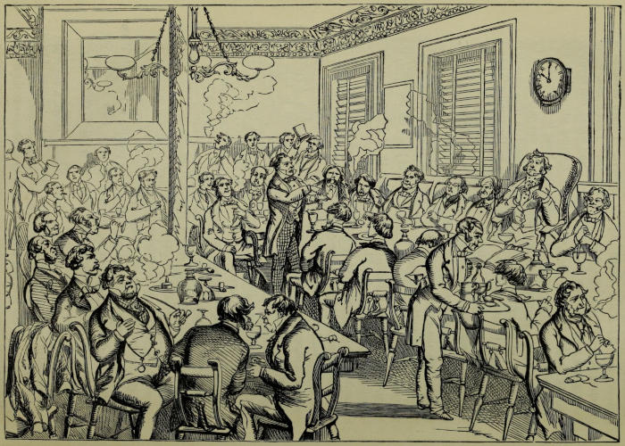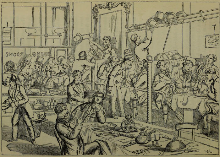 Push further on, if you please. You are not to linger in this ante-chamber, thickly hung with pictures, and otherwise, with its circular marble tables, much resembling a Parisian café, minus the mirrors and the rattle of the dominoes. This ante-chamber will be treated of anon; but your present business is with chops and harmony.