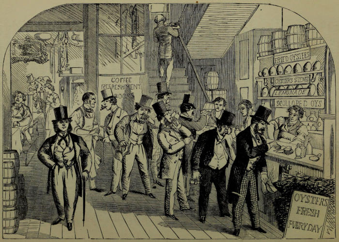 One o’clock in the morning. Of course we are supposed to be spending just a fortnight in town, and putting up at the Bedford, or it would never do to be so early-late abroad. We have been to the play, and have consumed a few oysters in the Haymarket; but the principal effect of that refreshment seems to have been to make us ten times hungrier. The delicate bivalves of Colchester have failed in appeasing our bucolic stomachs. We require meat. So, says the friend most learned in the ways of the town to his companion—“Meat at our hotel we eschew, for we shall find the entertainment of the dearest and dullest. We will go sup at Evans’s, for there we can have good meat and good liquor at fair rates, and hear a good song besides.” Whereupon we walk, till the piazza, about which I have kept you so long lingering, looms in sight. A low doorway, brilliantly lit with gas, greets our view. We descend a flight of some steps, pass through a vestibule, and enter the “Cave of Harmony.”