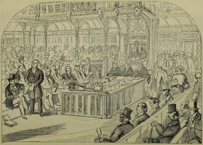But I must not forget, as I am sorely tempted to do in Westminster Hall, that it is two o’clock in the morning. This is the last night—the honourable House are positively determined to divide to-night, even if the Ministry go out—of the adjourned debate on the Gulliver Indemnity Bill. The honourable House have been speechifying at a tremendous rate for the last fortnight on the vexed question as to whether Samuel Gulliver, master mariner, is or is not to have an indemnity. Lord Viscount Palmerston, head of the government, says he shall. The Right Hon. Benjamin Disraeli, ex-Chancellor of the Exchequer, and head of the Opposition, says he sha’n’t. Honourable members in formidable numbers range themselves on either side. Night after night the House has been ringing with eulogies and denunciations of Gulliver and his indemnity. The country is in a ferment, the press in arms, on the Titanic topic. A monster meeting at Manchester has pledged itself, amid deafening cheers in the Lancashire dialect and rounds of “Kentish fire,” to support the indemnification of Gulliver by every legal and constitutional means. The “Times” newspaper, on its part, declares the indemnity an impudent swindle, and plainly announces that if Gulliver be indemnified, Great Britain must be content to remain henceforth and for ever a second-rate Power. The funds are going up and down like a see-saw, all with reference to Gulliver. More bets are made in the clubs and sporting localities in re Gulliver than on the coming Derby, or that other vexed question whether Bludgin Yahoo, who murdered the old lady with the crowbar (they say he is beautifully penitent in Newgate, and that the sheriffs cry to see him eat his daily beefsteak) will be hanged or not. The Emperor of Brobdignag is vitally interested in Gulliver, and there were two attachés from the Lilliputian embassy in the Speaker’s gallery the night before last. Never mind who Gulliver was, or what was the nature of the losses for which he sought to be indemnified. It matters as little now as whether Bolgrad was a hamlet or a town; and even while the conflict was raging, I very much question whether a hundred members of the House of Commons[365] knew anything about Gulliver personally, or cared two pins about him or his indemnity. In some respects politics are like fox-hunting. You want a fast-running, doubling, artful question—the more powerful in odour the better—to start with; but once run down the fox, and the question goes for nothing. Sometimes Reynard is scarce; but even then a red herring will serve at a pinch to bark at and run after.