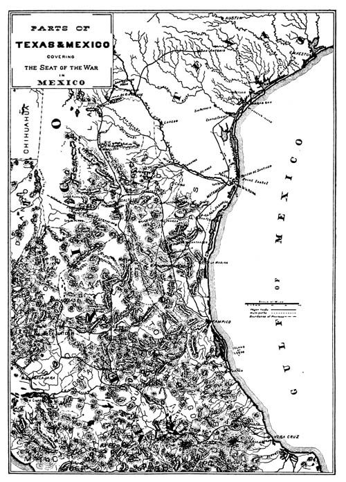 [3] A town of some three thousand inhabitants, situated on the river San Juan about three miles above its junction with the Rio Grande. It is about one hundred miles by land from Matamoros. (See Life and Letters of General George Gordon Meade, Vol. I, pages 109 and 119.)
