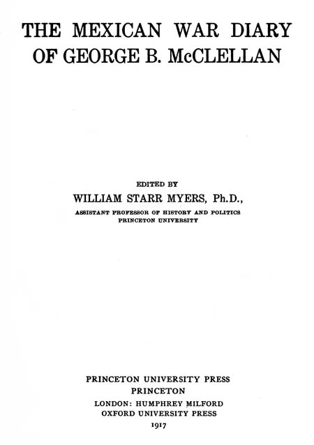 During the past four or five years I have been preparing a life of General McClellan in which I plan especially to stress the political influences behind the military operations of the first two years of the Civil War. The main source for my study has been the large collection of “McClellan Papers” in the Library of Congress at Washington, most of which hitherto never has been published. In this collection is the manuscript Mexican War diary and by the courteous permission and kind cooperation of General McClellan’s son, Professor George B. McClellan of Princeton University, I have been able to make the following copy. I desire to thank Professor McClellan for other valuable help, including the use of the daguerreotype from which the accompanying frontispiece was made. My thanks also are due Professor Dana C. Munro for his timely advice and valued assistance in the preparation of the manuscript for the press. The map is reproduced from the “Life and Letters of General George Gordon Meade,” with the kind permission of the publishers, Charles Scribner’s Sons.