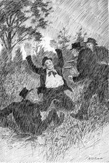 Over him stood two men with pistols levelled at the white, terrified face