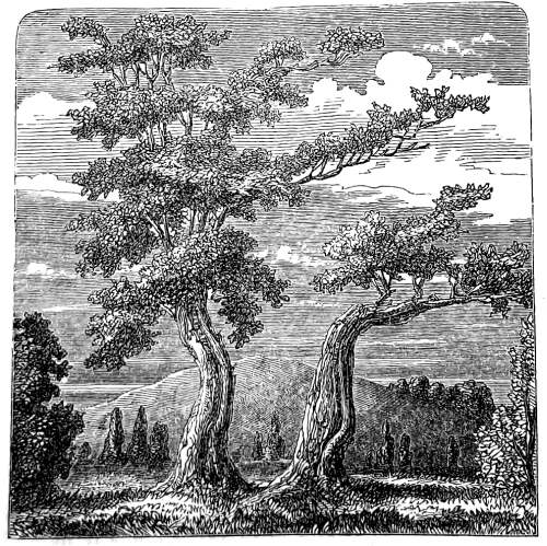 [9] That a single tree may be so decayed by time as to be divided into parts, and that these living parts may have the appearance of separate trees, we have a remarkable proof in the famous chestnut on Mount Etna, which was alive in the close of the last century.