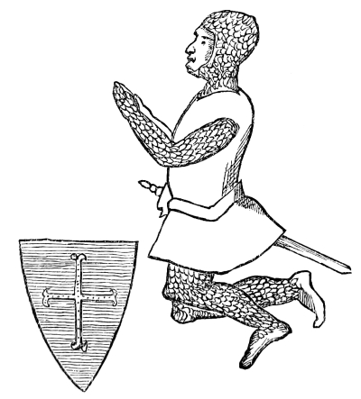 [24] “Grandson of Robert de Villiers, Lord of Little Crossby. This is supposed to be the knight, who was pourtrayed in the glass of three windows, in the upper part of Bridgnorth Church, in Com, Salop, in antique mail, cloathed with a surcoat, and girt with his sword and spurs: over which is an equilateral triangular shield, in which the arms of Molineux are depicted.”—Baronetage, 1741, in voce.