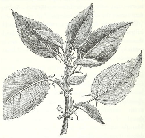 [67] As, on a former occasion, I had some doubt whether the shrub was monoecious or dioecious, I took another opportunity of making my examinations; the result of which was, that although a great many of the shrubs had male and female flowers on separate trees, yet a few had both male and female on the same tree.