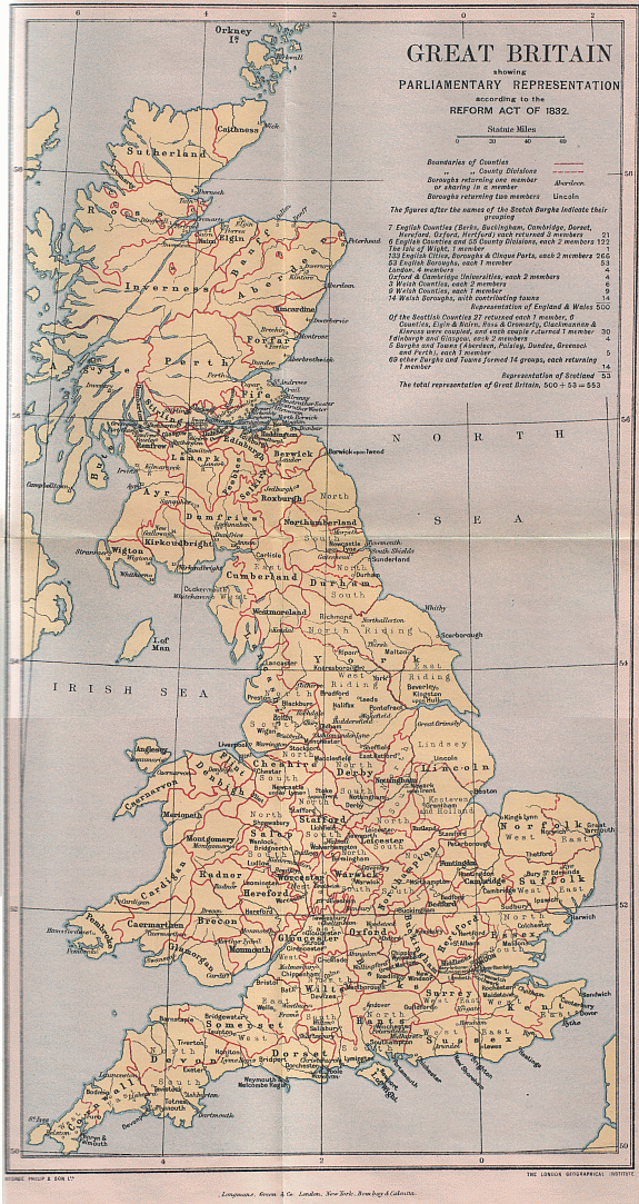 GREAT BRITAIN showing PARLIAMENTARY REPRESENTATION according to the REFORM ACT OF 1832.