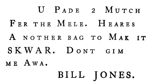 "Why when the telegraph was first invented it was necessary to double the wire lines, putting up two wires every time by way of completing the circuit. You know electrical energy will not manifest itself, or as we say, the electric current will not flow, unless there is a circuit established. Well at first they established the circuit by running two parallel wires, one to carry the current one way and the other to bring it back. That's a clumsy way to put it, but it will answer my purpose in explanation. After a while somebody found out that the earth is a better conductor of electricity than any wire could be, and so the circuit was established simply by running each end of a single wire into the ground, making the earth do the work formerly done by the other wire. That simple discovery saved exactly one half the expense of telegraph companies for wires."