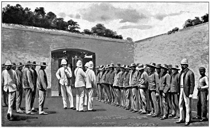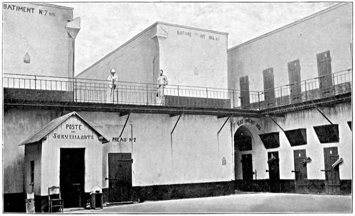 “The Cachots Noirs were never opened except at stated intervals,—once every morning for inspection, and once every thirty days for exercise and a medical examination of the prisoner.” I am glad to be able to state on the authority of the Minister of Colonies that this terrible punishment has now been made much less severe. Every seventh day the prisoner is placed for a day in a light cell; he is also given an hour’s exercise every day; and the maximum sentence has been reduced to two years, subject to the medical veto. In the text I have described what I saw; but this atrocity is now, happily, a thing of the past.—G. G.