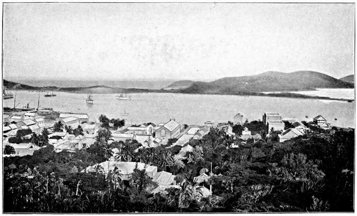 In the end the doctor passed us without a stain upon our sanitary character, and our baggage was put into a lighter, tightly sealed up and battened down, and then fumigated. One of our lady-passengers had a pet canary in a cage and there was much discussion as to what should be done with it. Its constitution would not stand fumigation, and yet the law said that nothing was to go into the colony without either medical examination or disinfection. I presume the Doctor must have compromised either with his conscience or with the lady, for the last I saw of the suspected bird was on the quay, where it was chirping a merry defiance of sanitary regulations, on the top of a truck load of baggage which had neither been inspected nor disinfected.