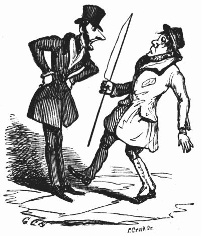 It is the cherished wish of our heart, more especially at the moment when we are entering upon a new-year, and opening a fresh account with Time, to be at peace with all men; but Col. Talker—(is his name Talker or Walker?)—has certainly done his utmost to uproot and scatter to the winds this pacific feeling. His conduct at the office, the day after our last publication, was extremely violent; and his threats intermingled with terrible oaths, such as "Dash my buttons," "Burn my wig," &c., were quite discreditable to him. And all on account of the dozen words we have said of him—for he is now cool enough on the score of Mrs. T.'s supposed grievance. This is the way with all your gallant champions! We hope Col. W. has not torn his shirt frill, nor injured his umbrella past repair. We hope too that he is not a confirmed duellist.