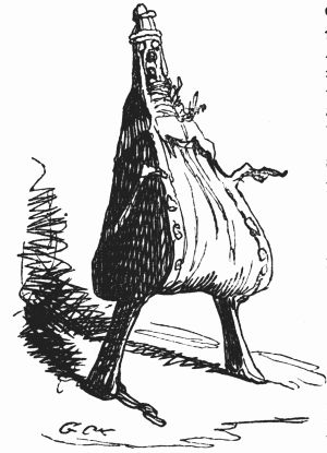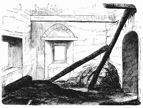 The construction is curious: a skeleton figure, after the late fashion of[298] single-line figures, is prepared with a strong rod of iron, which is fixed into a large block of wood, and this may be termed the building foundation. The next step—oh! most anti-angelic notion! is to collect hay-bands (enough for a hay-market), and therewith to mould the limbs and body. It were vain to attempt, by words, to describe the ludicrous effect produced; but, by the aid of the foregoing cut, it may be conceived. Good-bye to sublimity for that day! omne ignotum pro magnifico—it never answers to go behind the scenes; and if it be true that in some cases "ignorance is bliss," how much more truly do the Latin words tell us that "ignorance is ever the key-stone to sublimity."