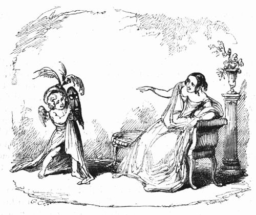 That knowledge was interesting—the angel-making was amusing, but the solemn tone of mind suited to St. Peter's was destroyed. In vain I stood before the lions of Canova; the one which slept could not inspire the repose which breathed through the sleeping marble; the one which watched, the sleepless sentinel, guarding the ashes of the dead, even this could not scare the demon of ridicule that played on hallowed ground. I turned to the mosaics, those fadeless pictures which seem as painted for eternity; no, not these—not Guido's Archangel, that wondrous type of heavenly beauty in the form of man—of power to conquer with the will to do—not even this could tame the merry sin within me. I stood before that statue which frenzied with undying passion the priest who gazed upon its beauties—the emblem of "Justice," but so lovely in its nakedness, that man, impure and imperfect, became a worshipper, and obliged the Pope to hide Justice from his children. The ridiculous prevailed; I smiled to think that the form as well as eyes of "Justice at Rome" must be hid from sight. And I laughed outright at woman's curiosity, when I thought how Lady See —— prevailed upon the Pope to lift the veil and show her the form which made a Pygmalion of a priest!