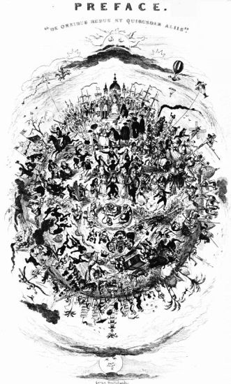 We have been entreated by a great many juvenile friends to "tell 'em all about our Engraved Preface in No. I.;" and entreaties from tender juveniles we never could resist. So, for their sakes, we enter into a little explanation concerning the great matters crowded into "our Preface." All children of a larger growth are, therefore, warned to skip this page if they please—it is not for them, who are, of course, familiar with the ways of the world—but only for the little dears who require a Guide to the great Globe they are just beginning to inhabit.