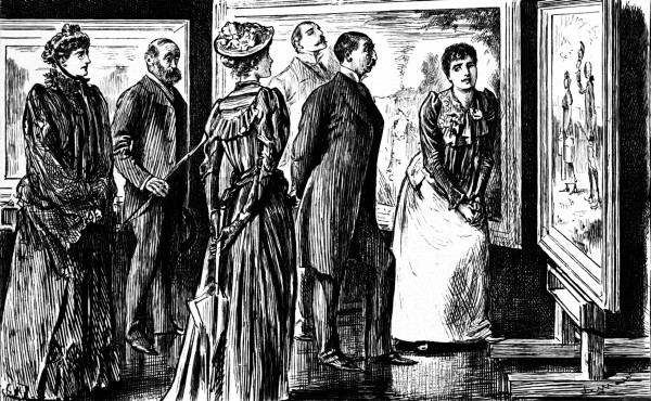 Just as Stodge is about to explain the recondite subtleties of his picture to a select circle of deeply interested and delightfully sympathetic women, his wife comes in with the baby, confound it!