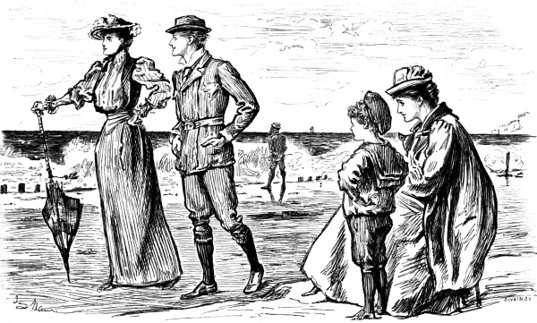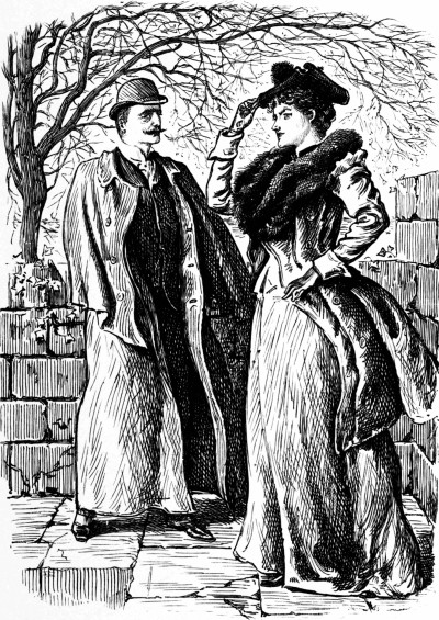 She-Gossip (alluding to newly-wedded pair).—"There go 'Beauty and the Beast,' as they are called! She would marry him. Her parents strongly opposed the match, as you may imagine."