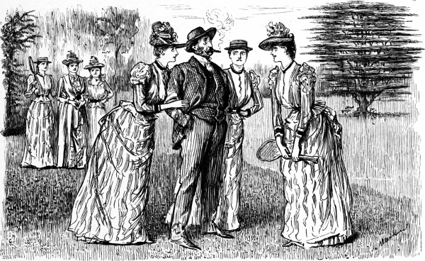 "Oh, papa, we've all quite made up our minds never to marry, now we've got this beautiful house and garden!" (Papa has taken this beautiful house and garden solely with the view of tempting eligible young men to come and play lawn-tennis, etc., etc.)