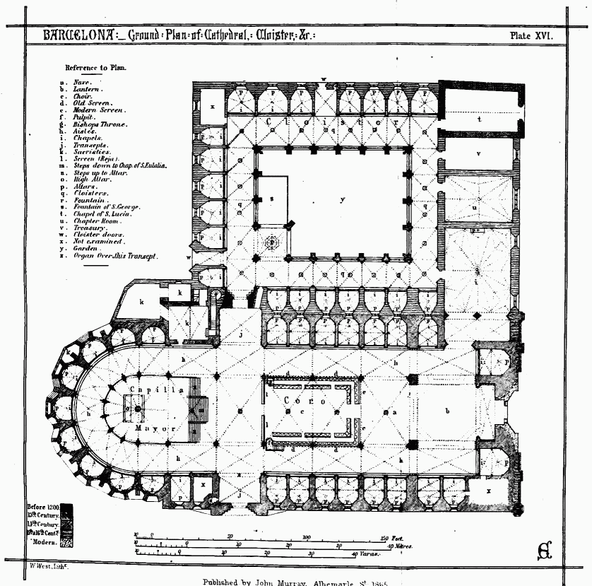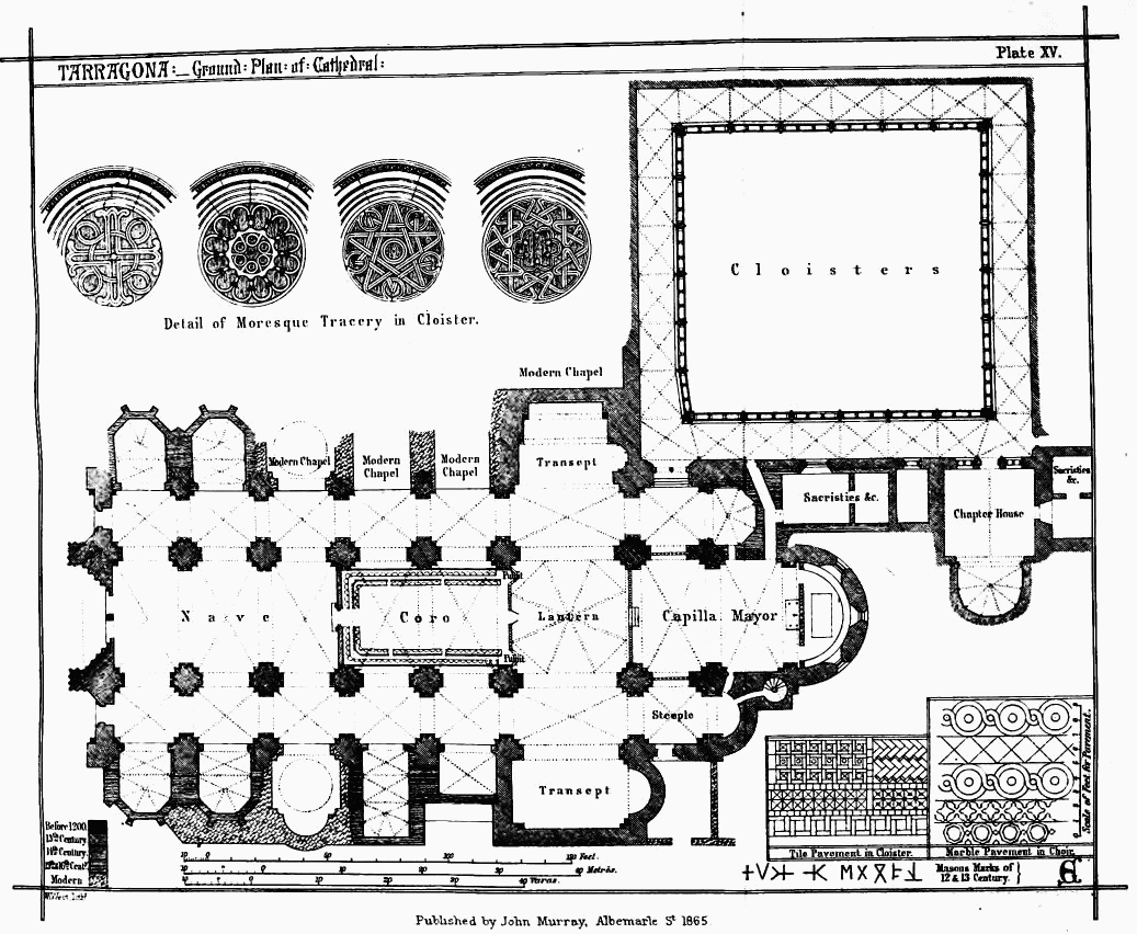 [450] Other plans still preserved in Spain are, the original design for the church of San Juan de los Reyes, Toledo, and that for the west front of Barcelona Cathedral. I have tried in vain to obtain copies of these plans.