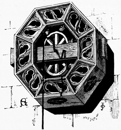 [382] I am reminded by this of a curious passage of somewhat similar character in the life of Sir Christopher Wren, which is to be gathered out of the entries in the old parish books of St. Dionis Backchurch, Fenchurch-street. Here Sir Christopher built a steeple, and when it was nigh completion the grave question arose whether they should have an anchor for a weather-cock. Sir Christopher preferred it, and some of the parishioners, of course, opposed it. They appealed to the bishop, and after many interviews it was at last decided that the bishop should meet them at Sir Christopher’s at 8 o’clock a.m. to settle the matter, Sir Christopher’s “gentleman” (who was always treated to something to drink by the churchwarden when he came to the church) having made the engagement. The bishop was punctual to his appointment, but Sir Christopher seems to have gone out for an early walk and forgotten all about it; and finally, the Bishop of London, having waited an hour for the great man, retired in despair, but ordered Sir Christopher’s weathercock to be adopted.