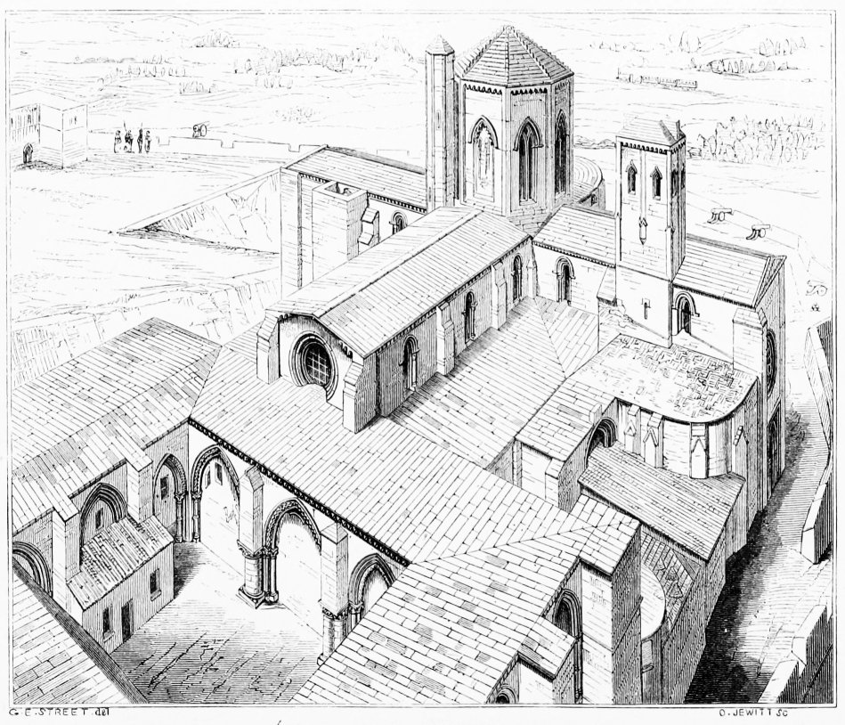 [375] It will be seen that the plan is exactly the same as that of the church of Las Huelgas, Burgos (see Plate II.), and the cathedral at Tudela (Plate XXIV.).