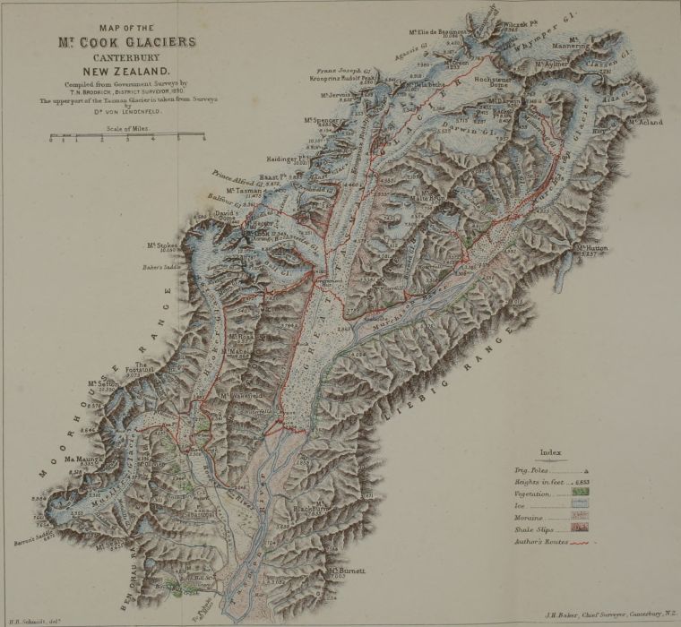 The author trusts that the publication of the same in book form, together with a map of the locality and a few photographic reproductions, will supply a want in the shape of a guide-book to the Alpine mountain district which is already beginning to be felt by tourists in New Zealand; and he hopes that the contents may not prove uninteresting to the general public, more especially to Swiss and Caucasian climbers, few of whom are perhaps aware of the extent and nature of the New Zealand Alpine chain.