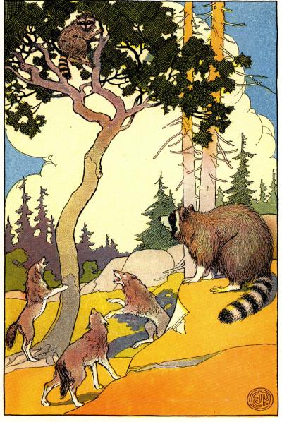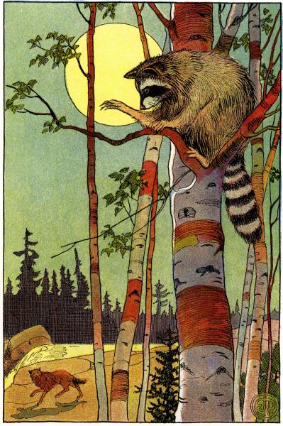 “No wolf can catch me when I’m up a tree,” growled the raccoon.