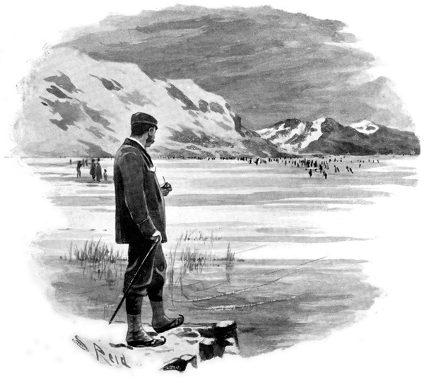 If Nature herself, however, is crystallised into214 silence and stillness, there is both movement and sound of another sort about. Here at a run over the field to the ice comes a schoolboy, as eager as if the whole day were not before him, his wooden skates clashing together as he stumbles on the molehills. Farther off a young man and a maiden are transacting in orthodox fashion the idyll of the ice, she seated on what has ordinarily been a mooring post, and holding out a dainty boot, while he, kneeling devotedly in the snow, buckles on her skate. All along the shore, on every hillock that affords a seat, are groups of eager enthusiasts, busy with straps and buckles; and the shrill whirring sound of the ice tells that many of the new-comers are already moving over it.