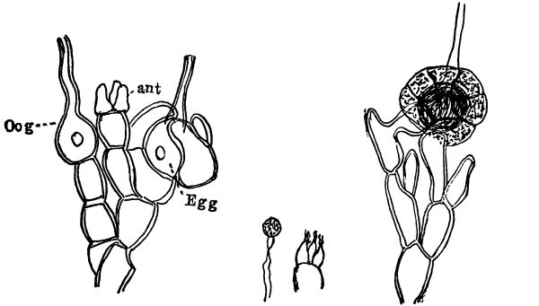A similar plan is followed in the other great groups. The processes of fertilization and reproduction can be most easily observed in the lower plants like the algæ and fungi, and this is an additional argument in favor of giving emphasis to these forms of plant life as well as the advantage of proceeding logically from simpler to more complex forms. Having also learned some of these plants in our study of physiology, we are following another recognized rule of pedagogy, i.e., proceeding from known objects to unknown structures and processes. Through the study of the organs of reproduction of the lower plants and by general comparative morphology we have come to an understanding of the morphology of the parts of the flower, and of the true sexual organs of the seed plants, and no student can hope to properly interpret the significance of the flower, or the sexual organs of the seed plants who neglects a careful study of the general morphology of the lower plants.