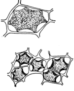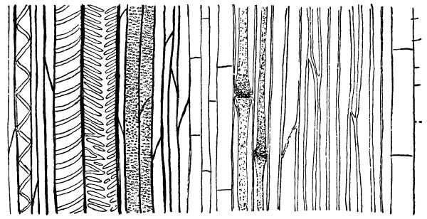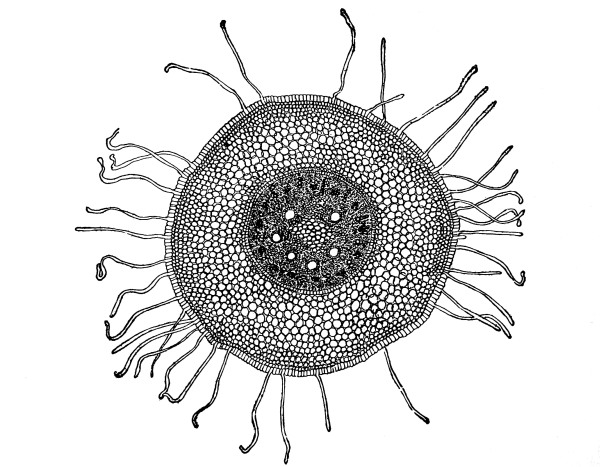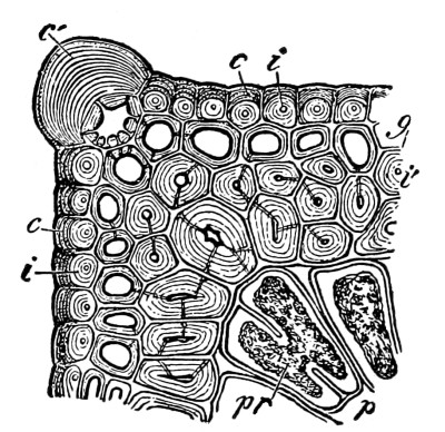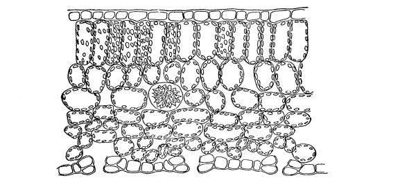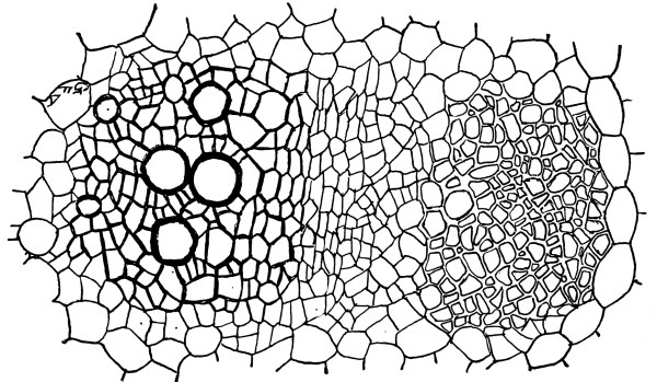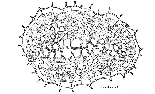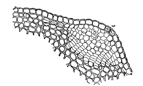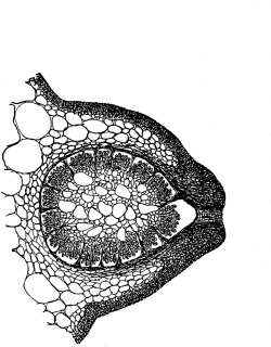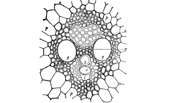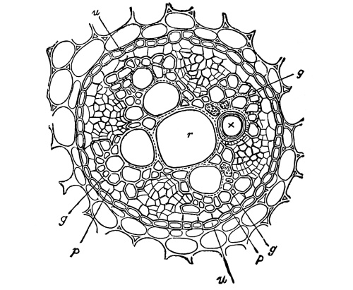 [39] Some fibers occur also very frequently in the Fundamental System, forming bundle-sheaths, or strands of mechanical tissue in the cortex.