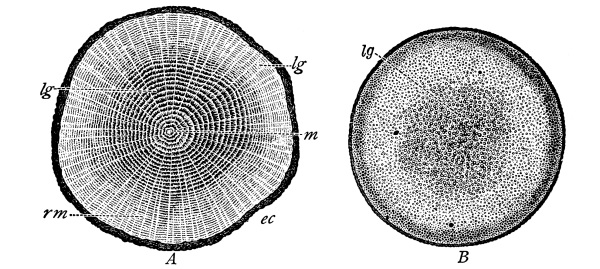 [38] It is interesting to note that in some foliage shoots the stem is entirely subterranean. See discussion of the bracken fern and sensitive fern in Chapter XXXIX.