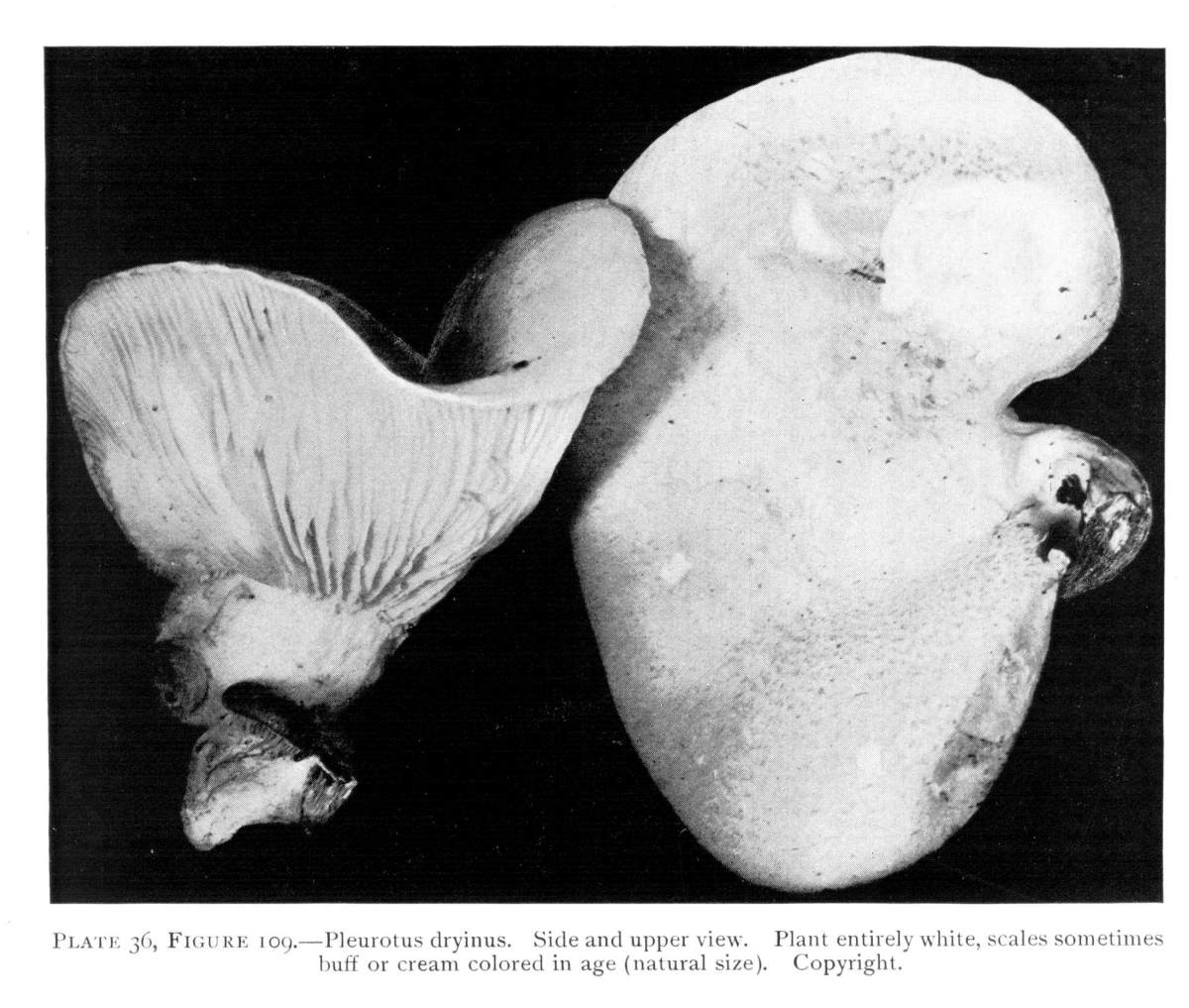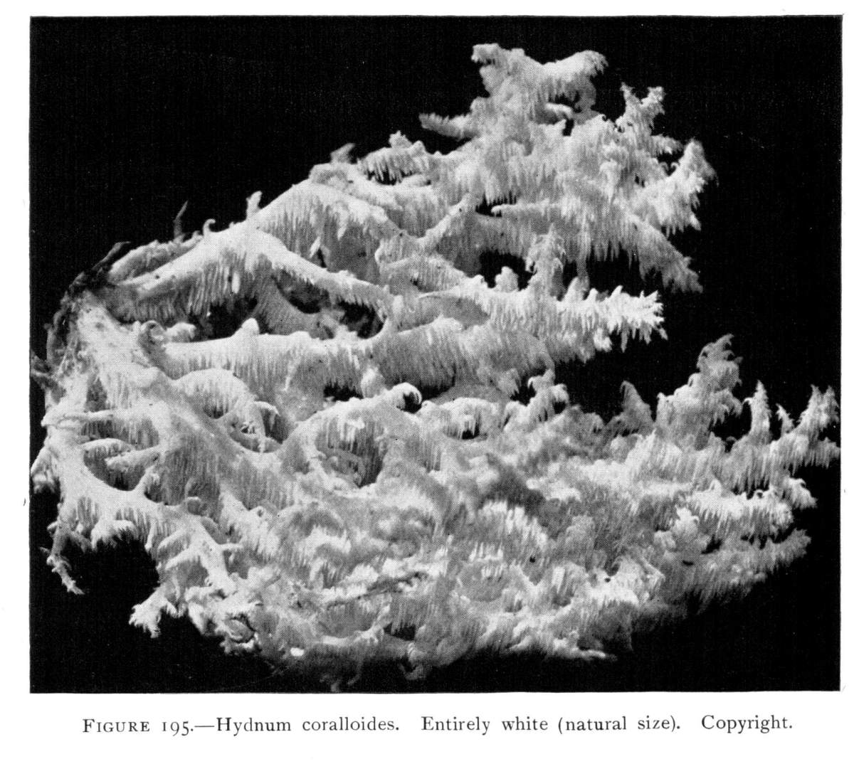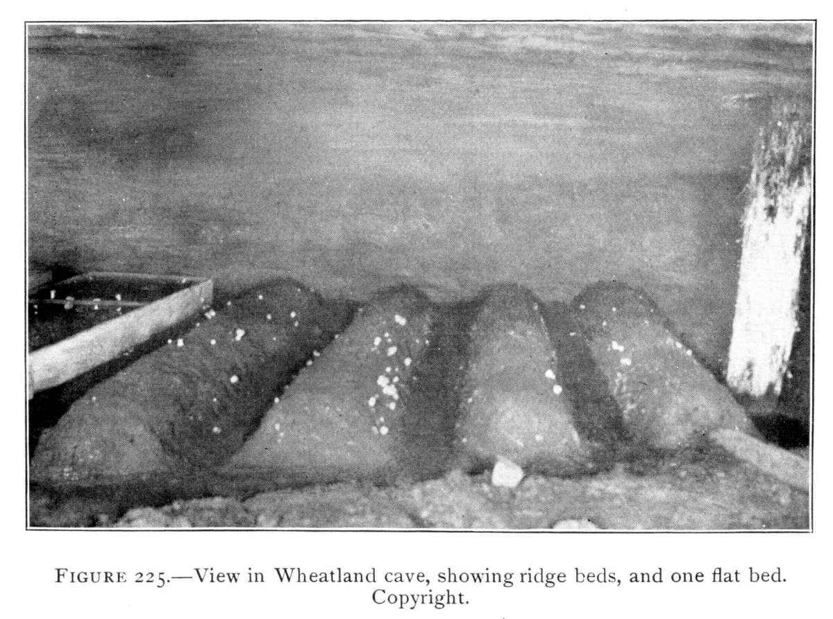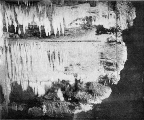 On the posts or wood props used to support the rock roof above, the mycelium grows in great profusion also, often covering them with a thick white mantle, or draping them with a fabric of elegant texture. From the upper ends of the props it spreads out over the rock roof above for several feet in circumference, and beautiful white pendulous tassels remind one of stalactites.