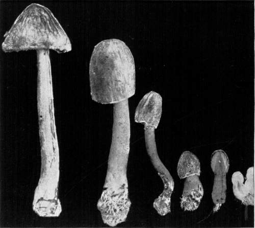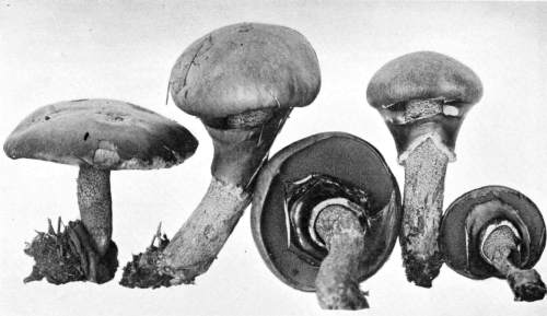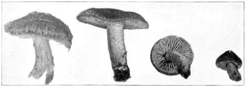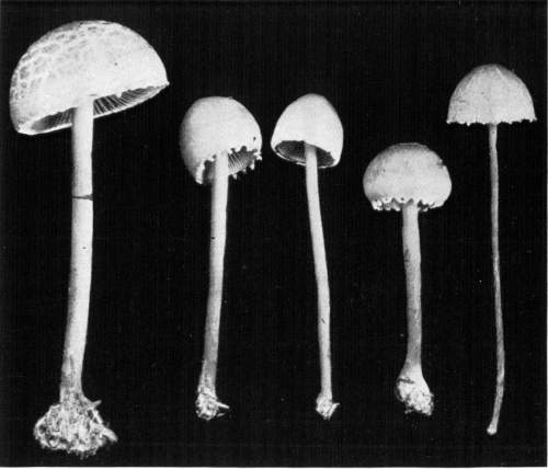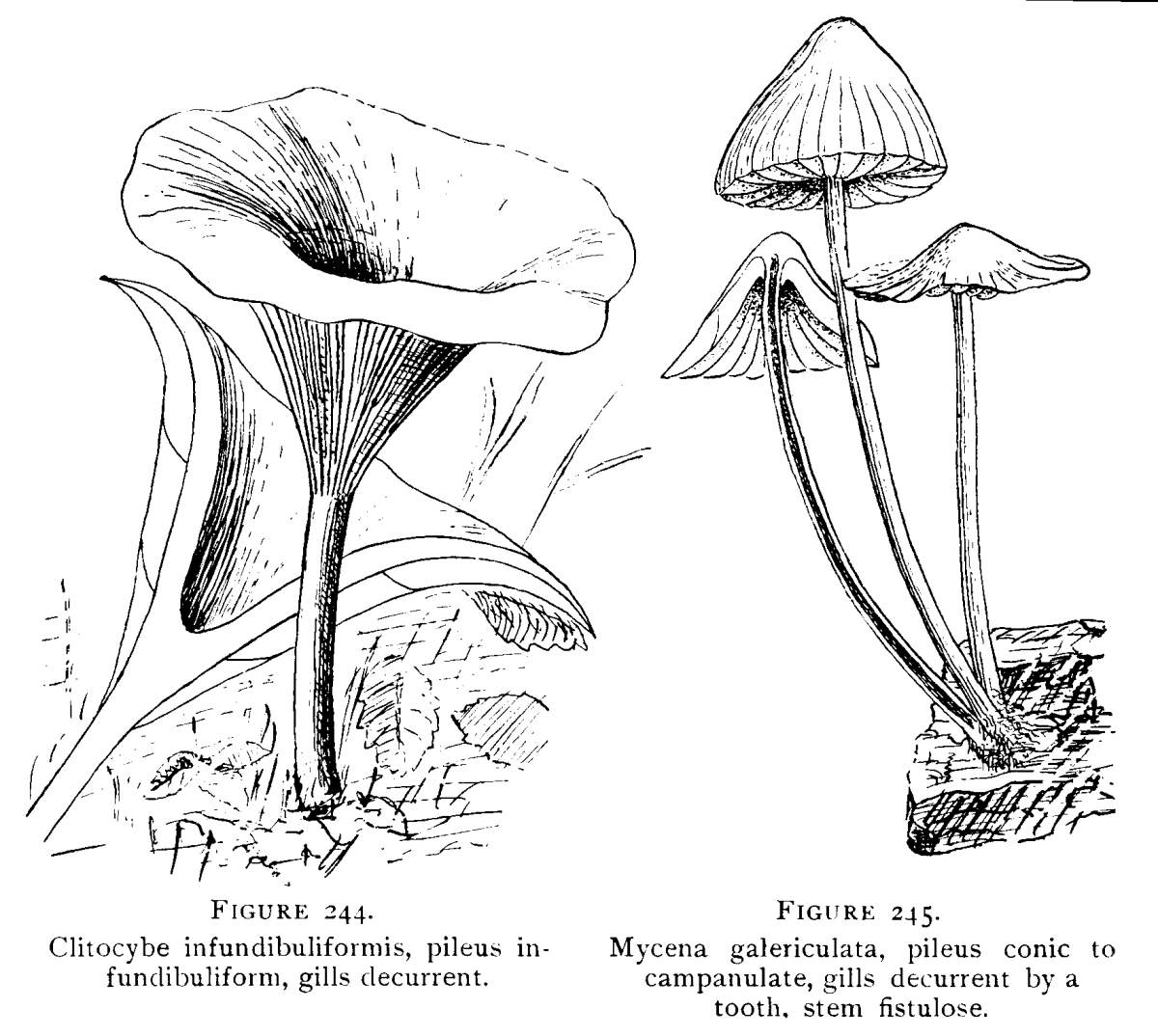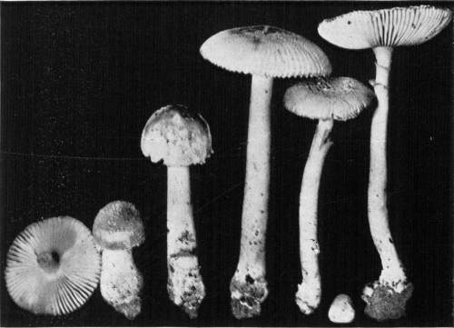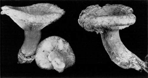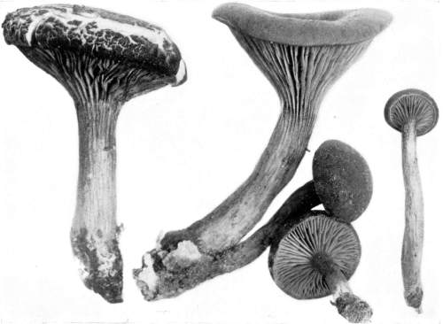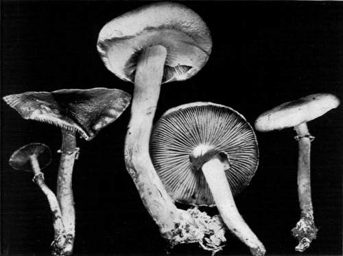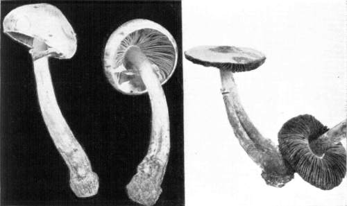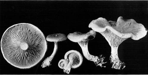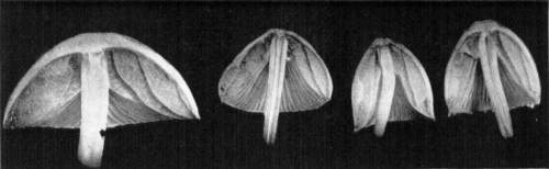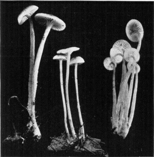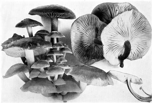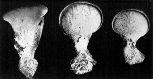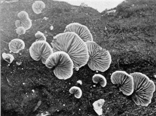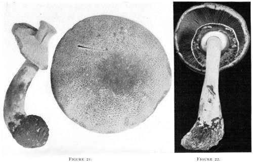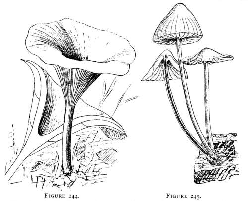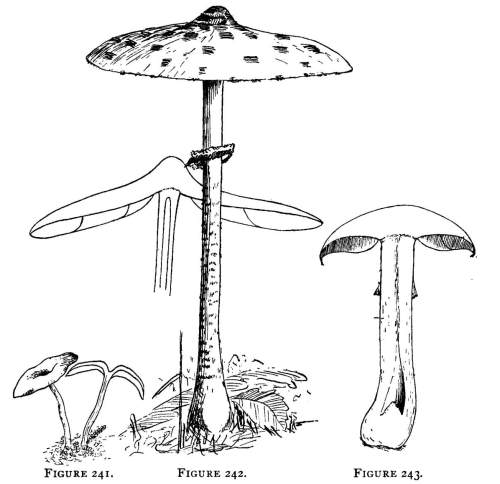 Value of Form and Characters.—The different kinds of mushrooms vary in form. Some are quite strikingly different from others, so that no one would have difficulty in recognizing the difference in shape. For example, an umbrella-shaped mushroom like the one shown in Fig. 1 or 81 is easily distinguished from a shelving one like that in Fig. 9 or 188. But in many cases different species vary only slightly in form, so that it becomes a more or less difficult matter to distinguish them.