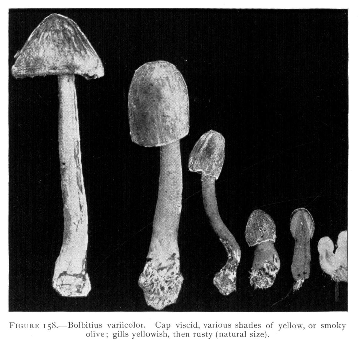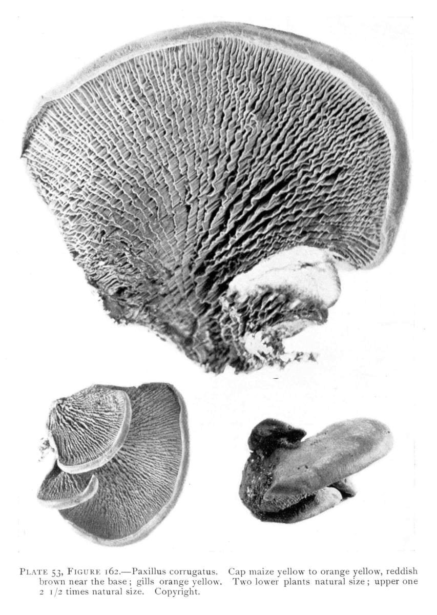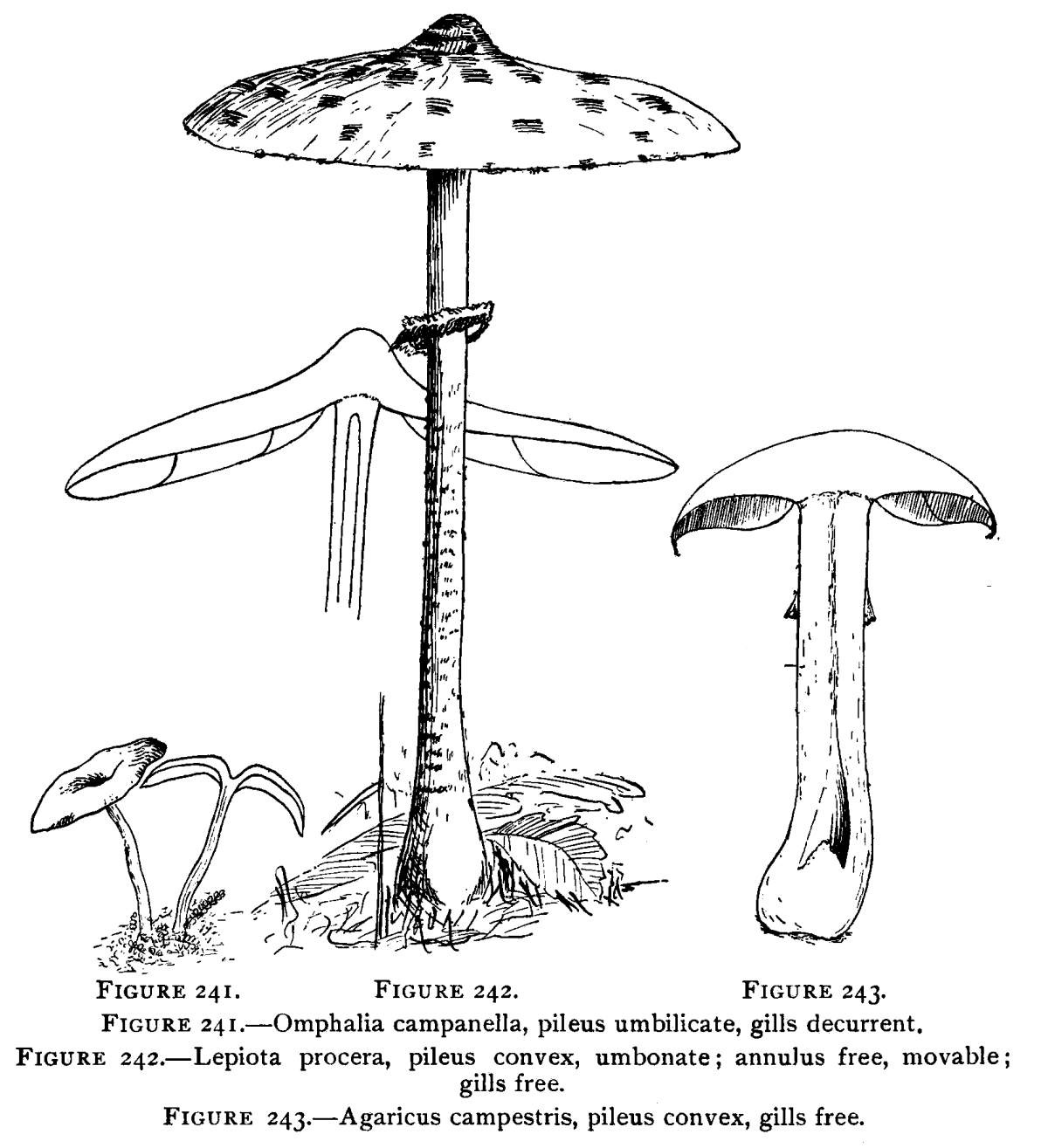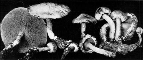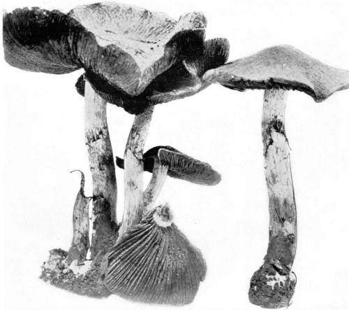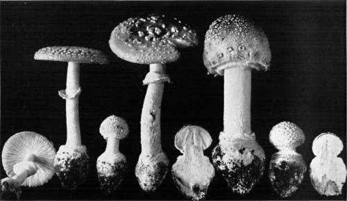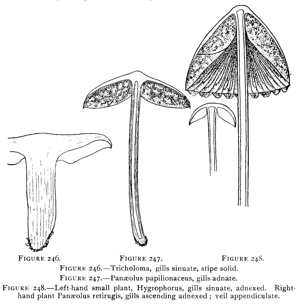 Value of Form and Characters.—The different kinds of mushrooms vary in form. Some are quite strikingly different from others, so that no one would have difficulty in recognizing the difference in shape. For example, an umbrella-shaped mushroom like the one shown in Fig. 1 or 81 is easily distinguished from a shelving one like that in Fig. 9 or 188. But in many cases different species vary only slightly in form, so that it becomes a more or less difficult matter to distinguish them.