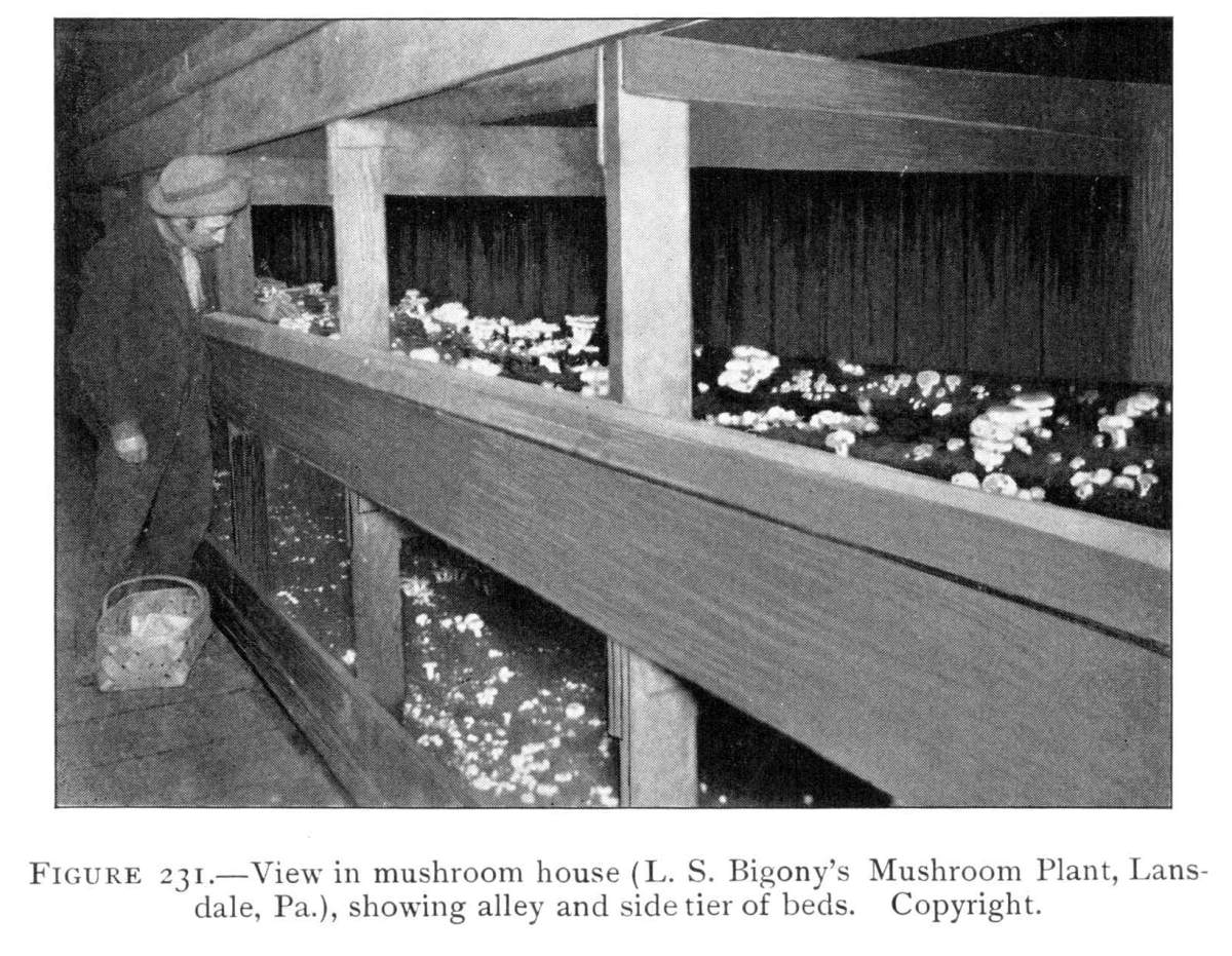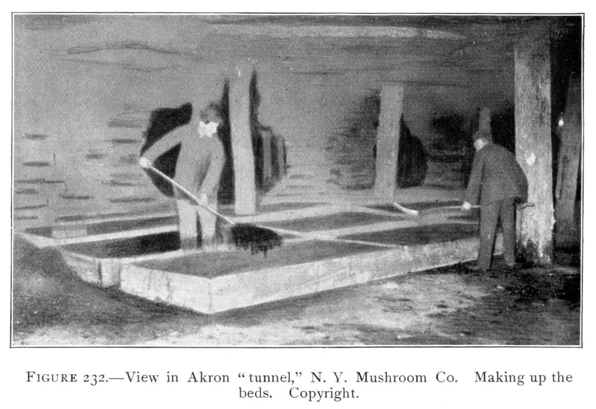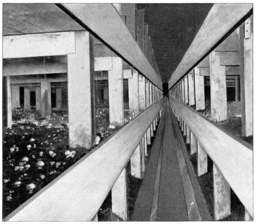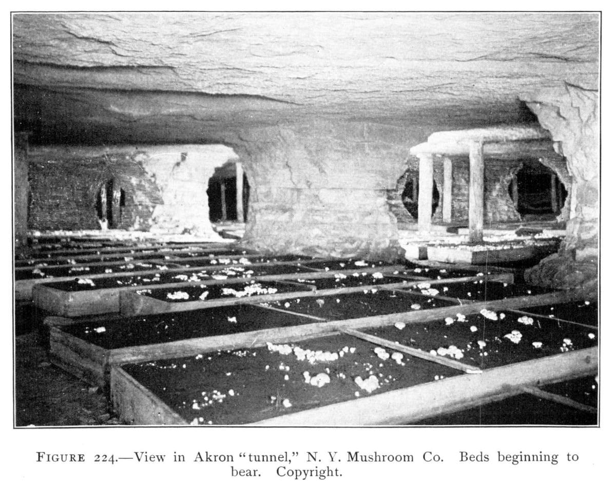 Fungi in Abandoned Coal Mines.—Mushrooms and bracket fungi grow in great profusion on the wood props or doors in abandoned coal mines, cement mines, etc. There is here an abundance of moisture, and the temperature conditions are more equable the year around. The conditions of environment then are very favorable for the rapid growth of these plants. They develop in midwinter as well as in summer.