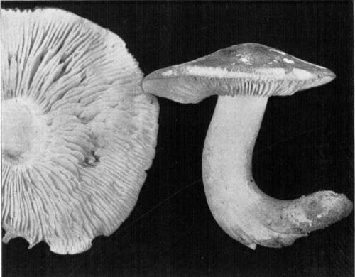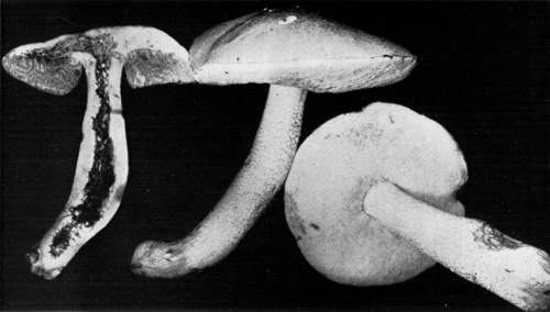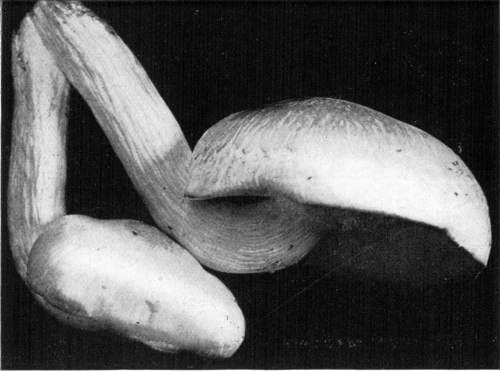 Figure 14.—Amanita phalloides. Plant turned to one side by directive force of gravity, after having been placed in a horizontal position. (Natural size.)