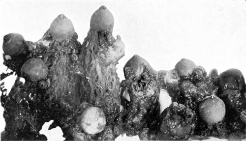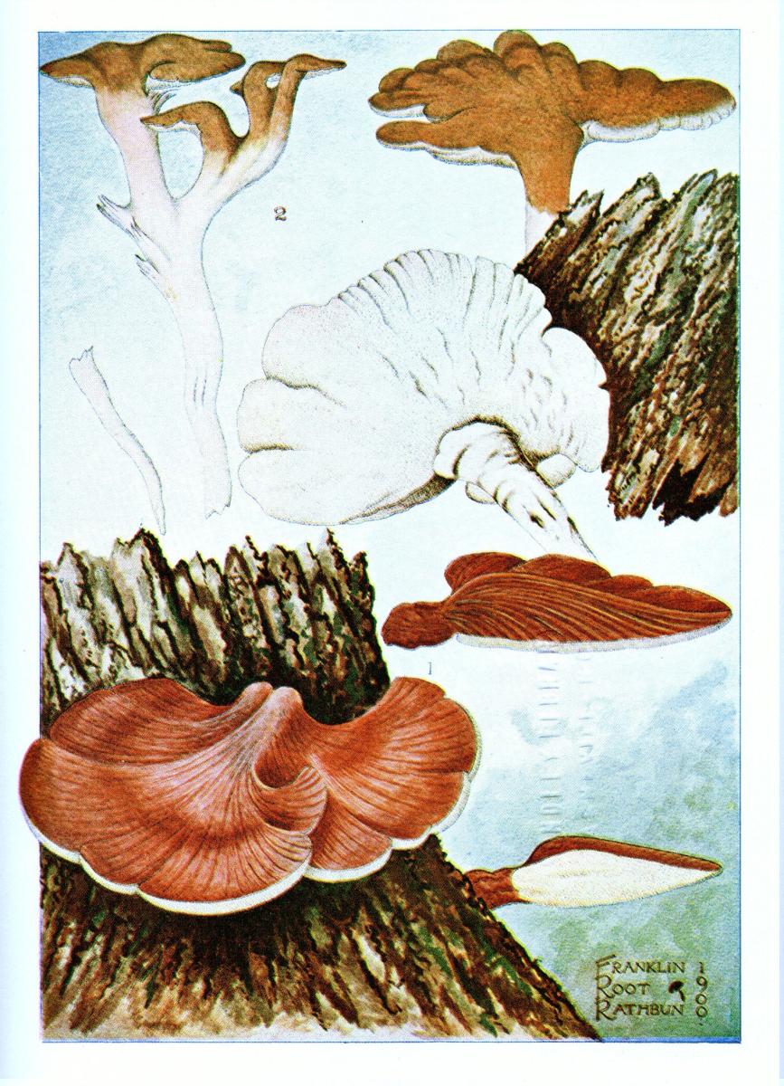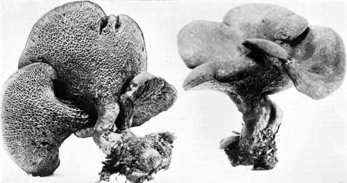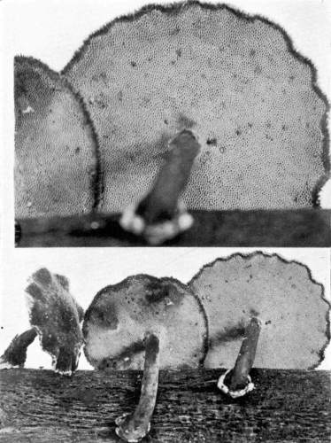 There are also many important problems for the student in this group of plants. Many of our species and the names of the plants are still in great confusion, owing to the very careless way in which these plants have usually been preserved, and the meagerness of recorded observations on the characters of the fresh plants, or of the different stages of development. The study has also an important relation to agriculture and forestry, for there are numerous species which cause decay of valuable timber, or by causing "heart rot" entail immense losses through the annual decretion occurring in standing timber.