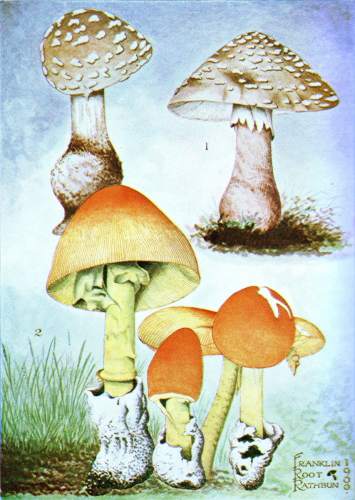 Some apply the term mushroom to a single species, the one in cultivation, and which grows also in fields (Agaricus campestris), and call all others toadstools. It is becoming customary with some students to apply the term mushroom to the entire group of higher fungi to which the mushroom belongs (Basidiomycetes), and toadstool is regarded as a synonymous term, since there is, strictly speaking, no distinction between a mushroom and a toadstool. There are, then, edible and poisonous mushrooms, or edible and poisonous toadstools, as one chooses to employ the word.