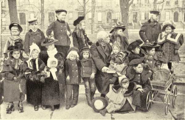 Although I am a hermit now, I was not always so. All who read this book must see that. I spent many happy years in society—and never an unhappy year anywhere, whether in jail or under[Pg xiv] social persecution; and I have lived many years with my family in my own country and in foreign lands. My wife, of whom I have spoken of in the following pages, passed into shadow-land in '77. I have children who are scattered widely now. My first child, Lily, was born in Boston, in '52, and died when five months old, in Boston. My second daughter, Susan Minerva, was born in '55, and married Philip Dunbar Guelager, who for thirty-six years was the head of the gold and silver department of the Subtreasury in this city. She now lives at "Minerva Lodge," Stamford, Connecticut, with my seven-year-old grandson. My first son, George Francis Train, Jr., was born in '56, and is now in business in San Francisco. Elsey McHenry Train, my last child, now lives in Chicago. He was born in '57. I was able to see these children well educated, at home and abroad, and to give them some chance to see the great world I had known.