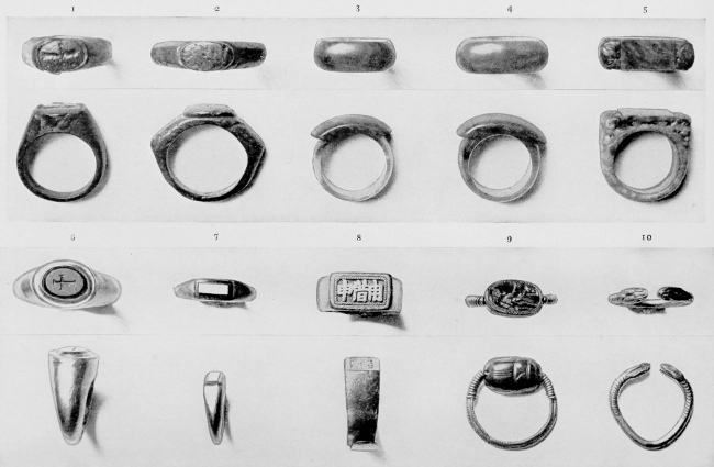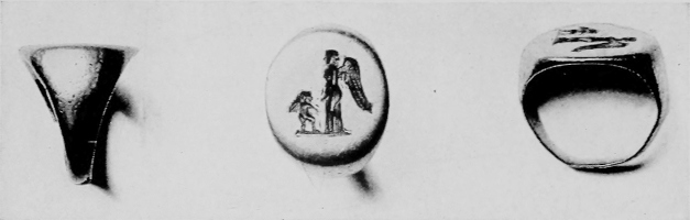 The illustrations of rings in the British Museum are mostly from one or the other of the two exceedingly comprehensive catalogues of rings published by this museum: “Finger Rings, Greek, Etruscan and Roman,” by F. H. Marshall, and “Finger Rings, Early Christian, Byzantine, Teutonic, Mediæval, and Later,” by O. M. Dalton. In each volume the section devoted to a special description of each ring is preceded by a most scholarly and enlightening introductory essay.