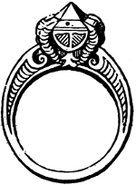 A most important class are the rings bestowed upon and worn by the higher ecclesiastics. Papal rings, among which the most noted is the “Fisherman’s Ring,” rings for cardinals and for bishops, and also occasionally in former times, for abbots, were and are still regarded with special reverence in the Roman and Greek churches. The usage of wearing rings of this type dates far back in the history of Christianity. Many examples of these[viii] rings are given, as also of others bearing Christian emblems, and of those worn by nuns, and by widows who had vowed never to re-wed.