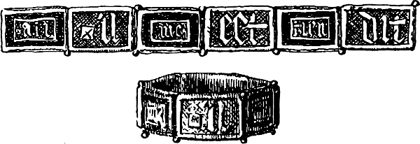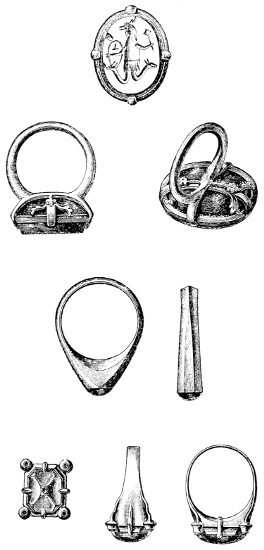 [520] O. M. Dalton, “Franks Bequest, Catalogue of the Finger Rings, Early Christian, Byzantine, Teutonic, Mediæval and Later [British Museum],” London, 1912, p. 138, Nos. 877, 878, 879; see Plate XV.