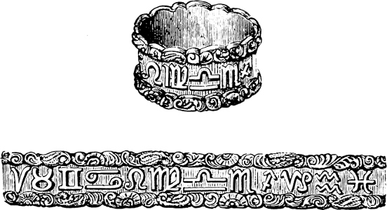 [555] William Hamper, “Observations on a Gold Ring with a Runic Inscription,” Archæologia, vol. xxi, London, 1827, pp. 24–30.