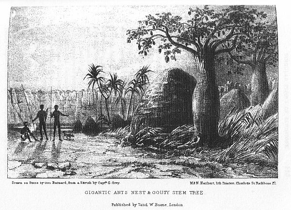From this period up to Friday the 15th of March the wind blew strong from the southward, accompanied with such a heavy sea and tremendous surf that to move was impossible. Our position was very trying; inactivity, under the circumstances in which we were situated, was most difficult to support; for the mind, ever prone to prey upon itself, does so far more when you are compelled to sit down and patiently submit to misfortunes against which there are no means of resistance. Such was the state to which we were now reduced, on a barren and unknown coast which the foot of civilized man had never before trodden: many of my party were suffering acute bodily pain from the badness of the provisions on which they were compelled to subsist; the weakness of most of them, and myself amongst the number, precluded the possibility of any distant explorations being made, and we were kept in a constant state of watchfulness in order to prevent the natives from again surprising us; for they repeatedly showed themselves in our vicinity, hovering about with no friendly intentions. All that was left therefore for us was to sit upon the lonely beach, watching the winds and the waters until some favourable moment might enable us to get off and once more engage in that task of which so small a portion was as yet accomplished.