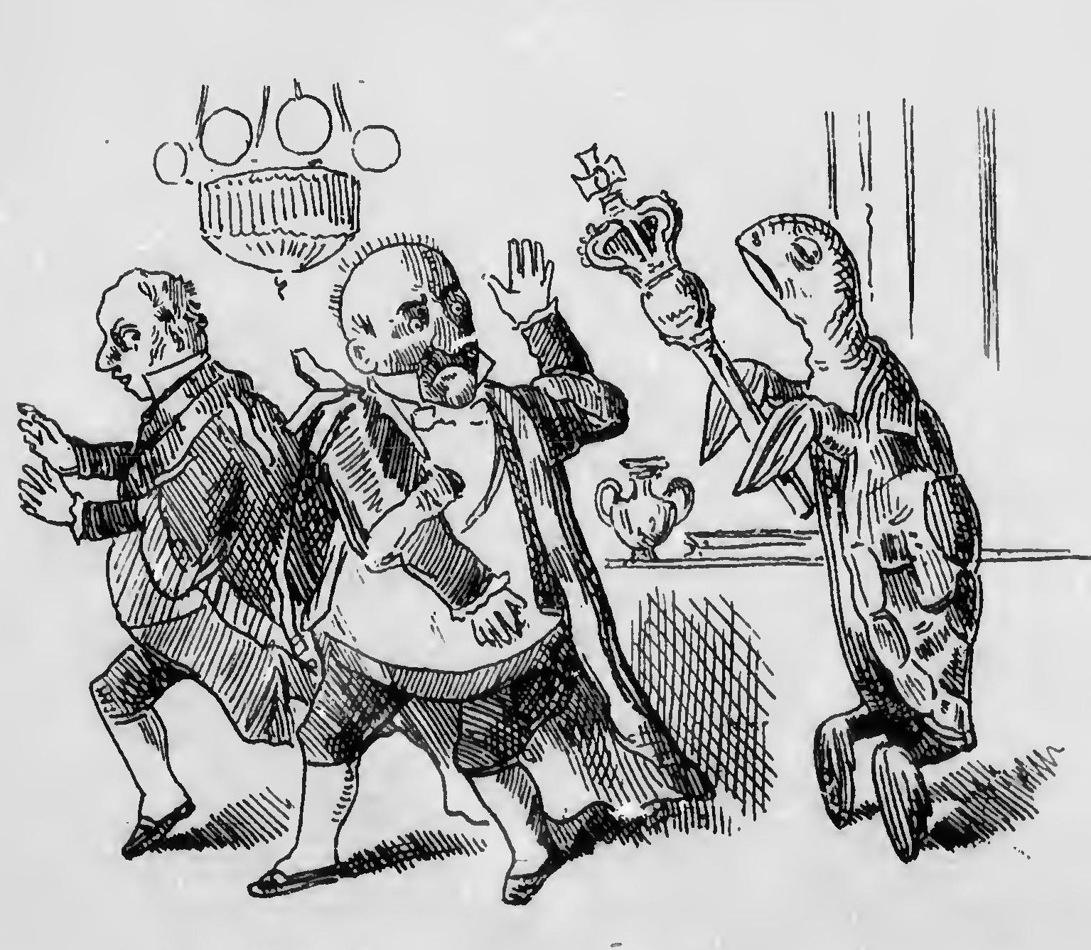 Great coats, umbrellas, were in vain,