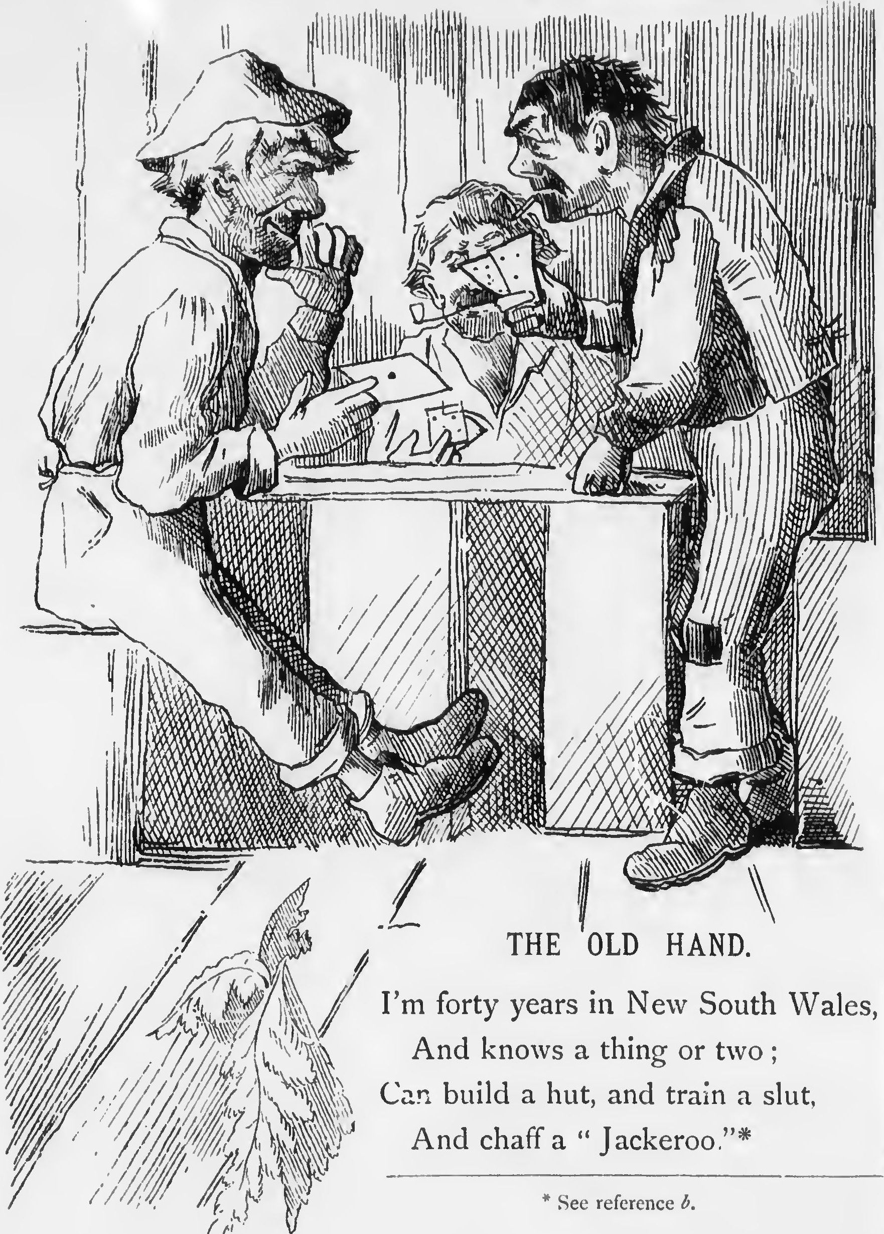 In conclusion, I would fain ask thee, gentlest of gentle readers, to look with leniency on the many defects and shortcomings of this volume, and to remember that the writer was long, if not an outcast, a homeless wanderer among the saltbush plains and and sandhills of Australia, and the kauri and pouriri forests of New Zealand; that, for seven years, the prototypes of "Ancient Bill," hereinafter mentioned, were his associates; and that, if these experiences have enabled him to touch with some degree of accuracy on matters relating to the Bush, they have at the same time militated against the cultivation of those refinements of style and language which commend the modern author to his reader, and which are Only to be acquired in the civilized atmosphere of a city.