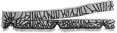 [17] It may be stated that while conducting this mode of section of Staurophora laciniata, the animal responds to each cut of the contractile tissues with a locomotor contraction (or it may not respond at all); but each time the section crosses one of the radial tubes, the whole bell in front of the section, and the whole strip behind it, immediately go into a spasm.